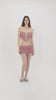 Textured red seersucker fabric is finished with cream corded lace to the front and back, on a basque shaped corset which emphasises your waist. Perfect for summer days, we love this styled with high waisted denim flares or shorts with cowboy boots.